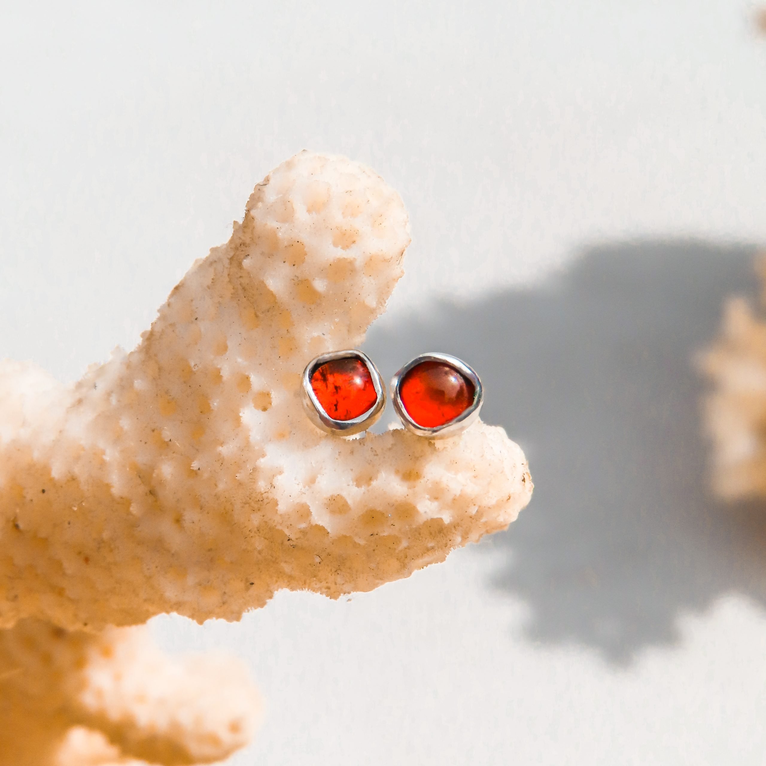 Composition: The Galaxy Fire Opal Stud is available in recycled or fairtrade 14 ct. yellow gold and sterling silver.