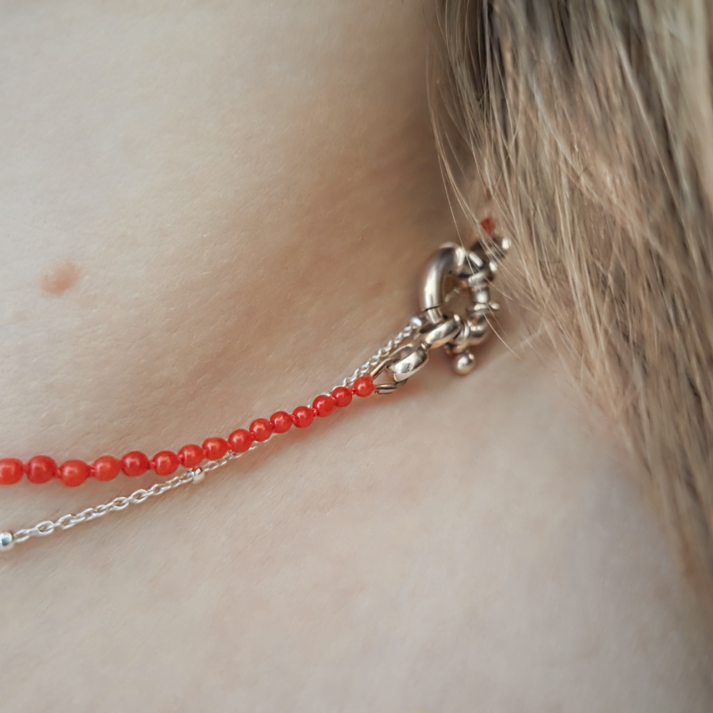 Afmetingen: De La Mer Coral ketting is inclusief sluiting 40cm lang. Bloedkoralen ±2mm.