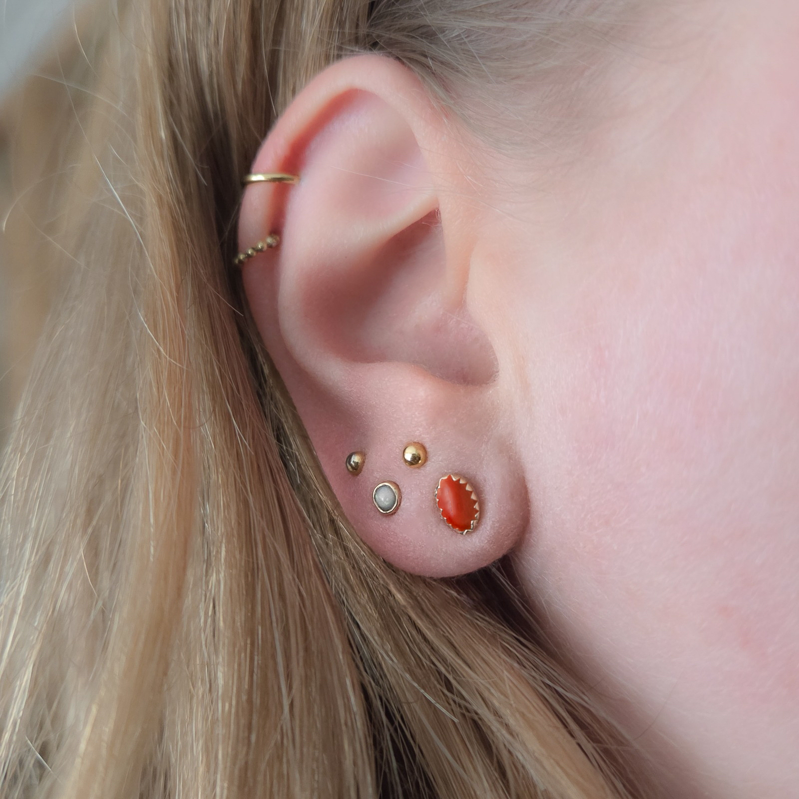 The La Mer Coral Bold Stud is made to order with love, so it can take a little longer until we’re able to send it to you. Please see our Shipping & Returns page for more information.